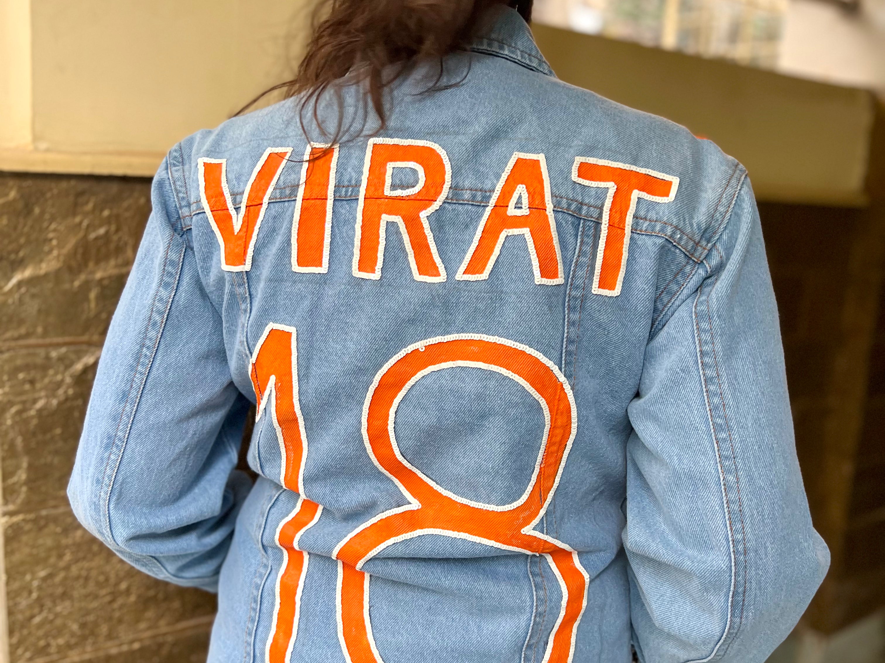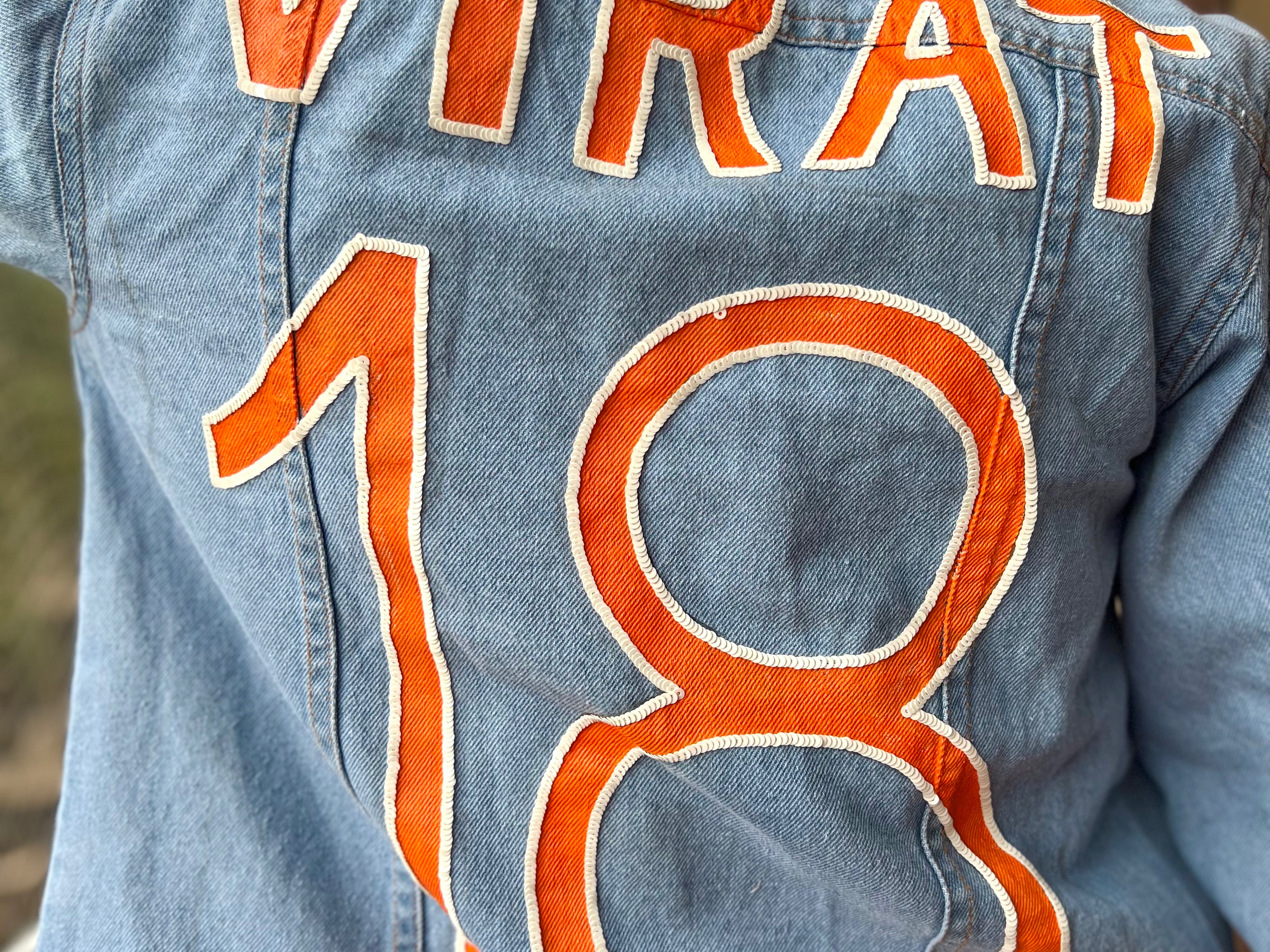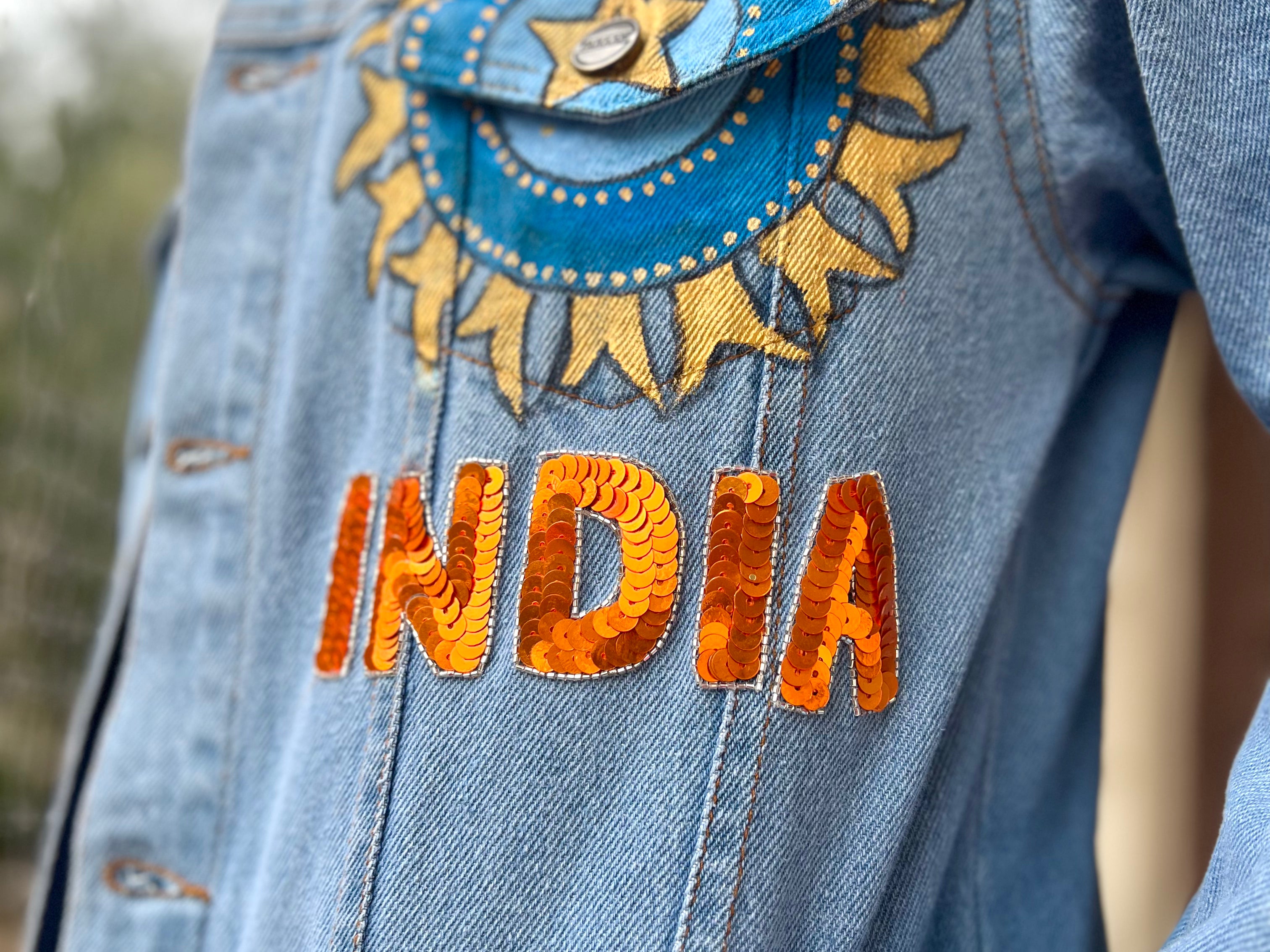 - 100% cotton unisex denim jacket, hand painted & hand embroidered.