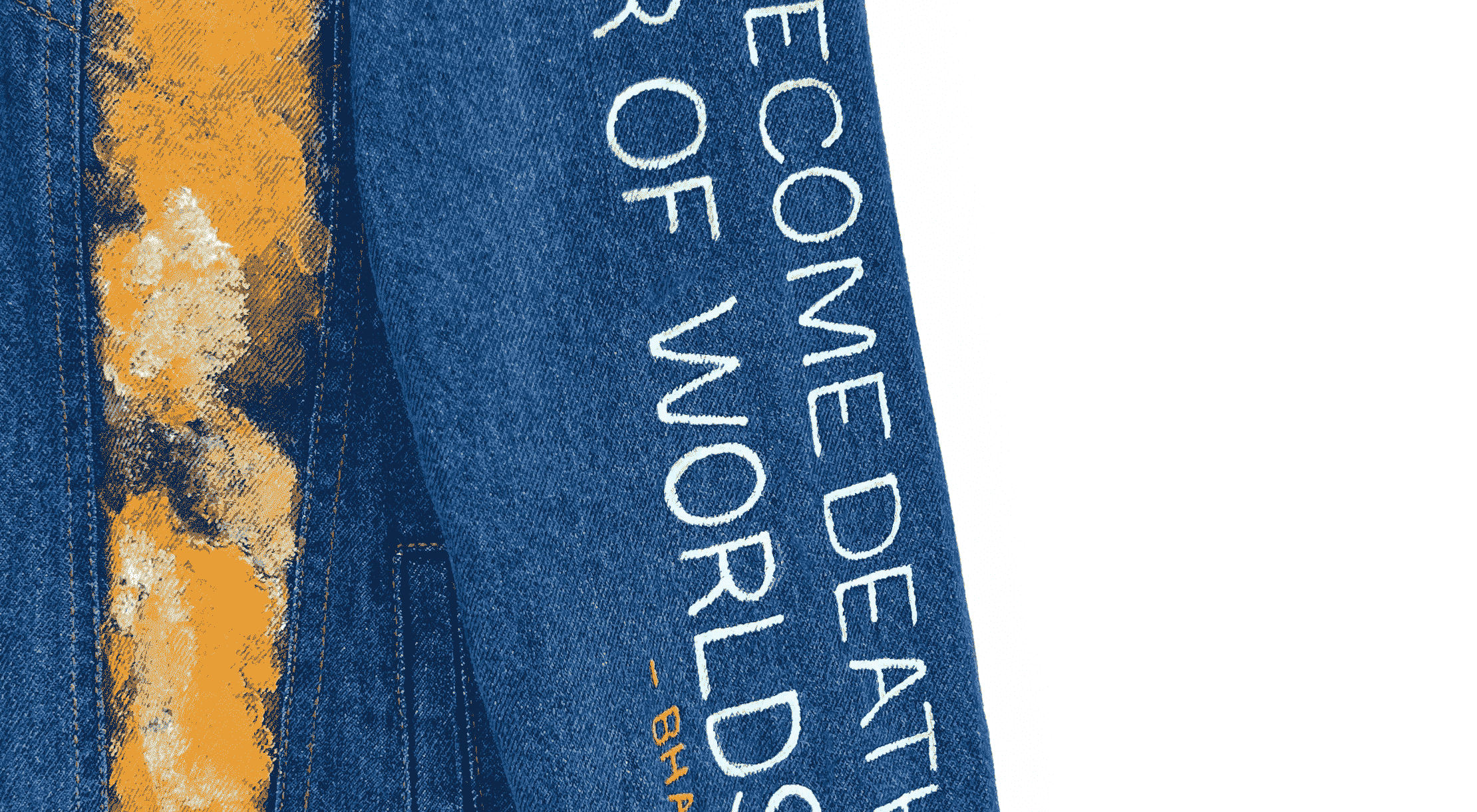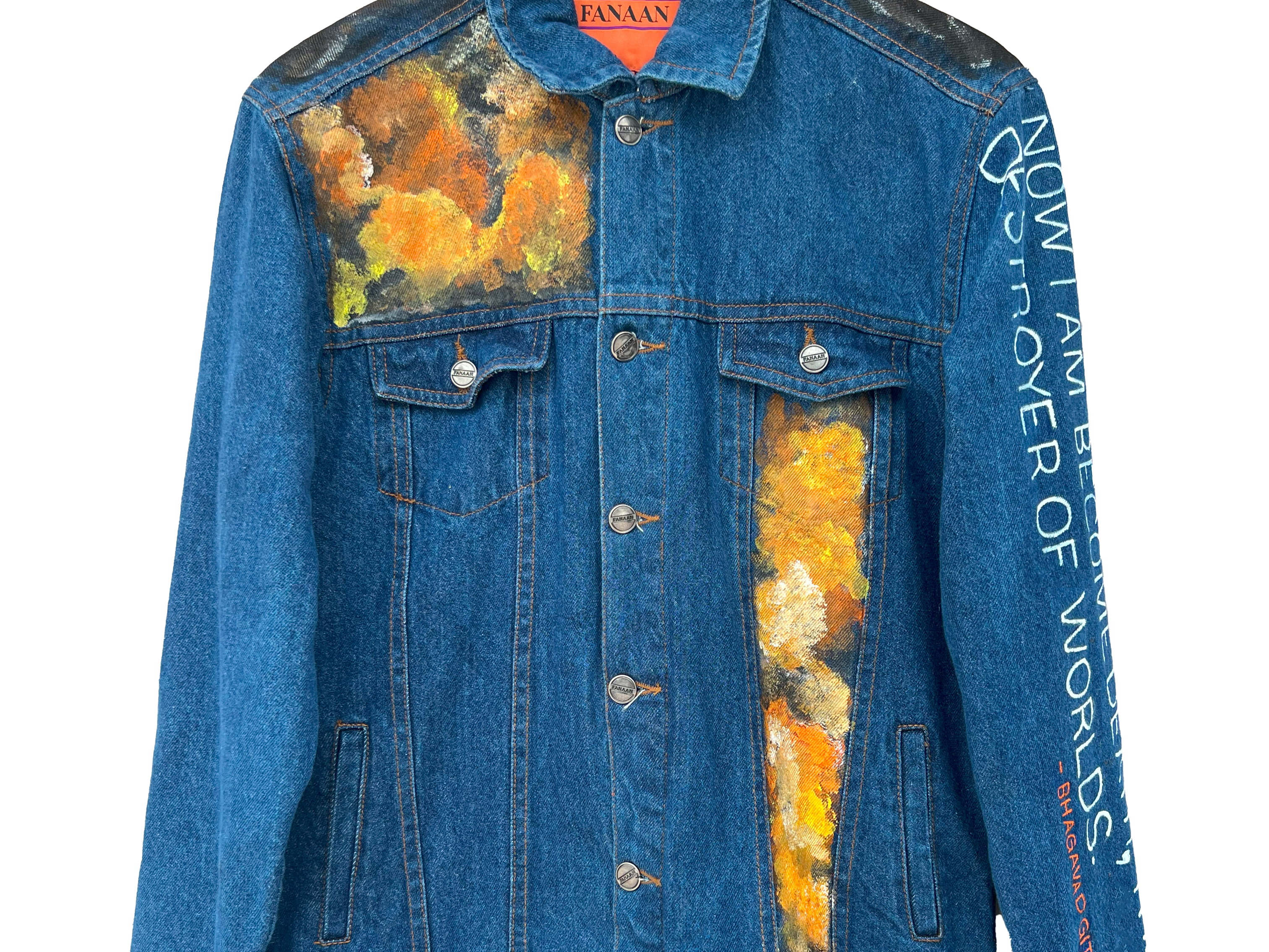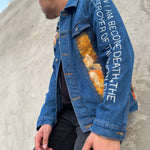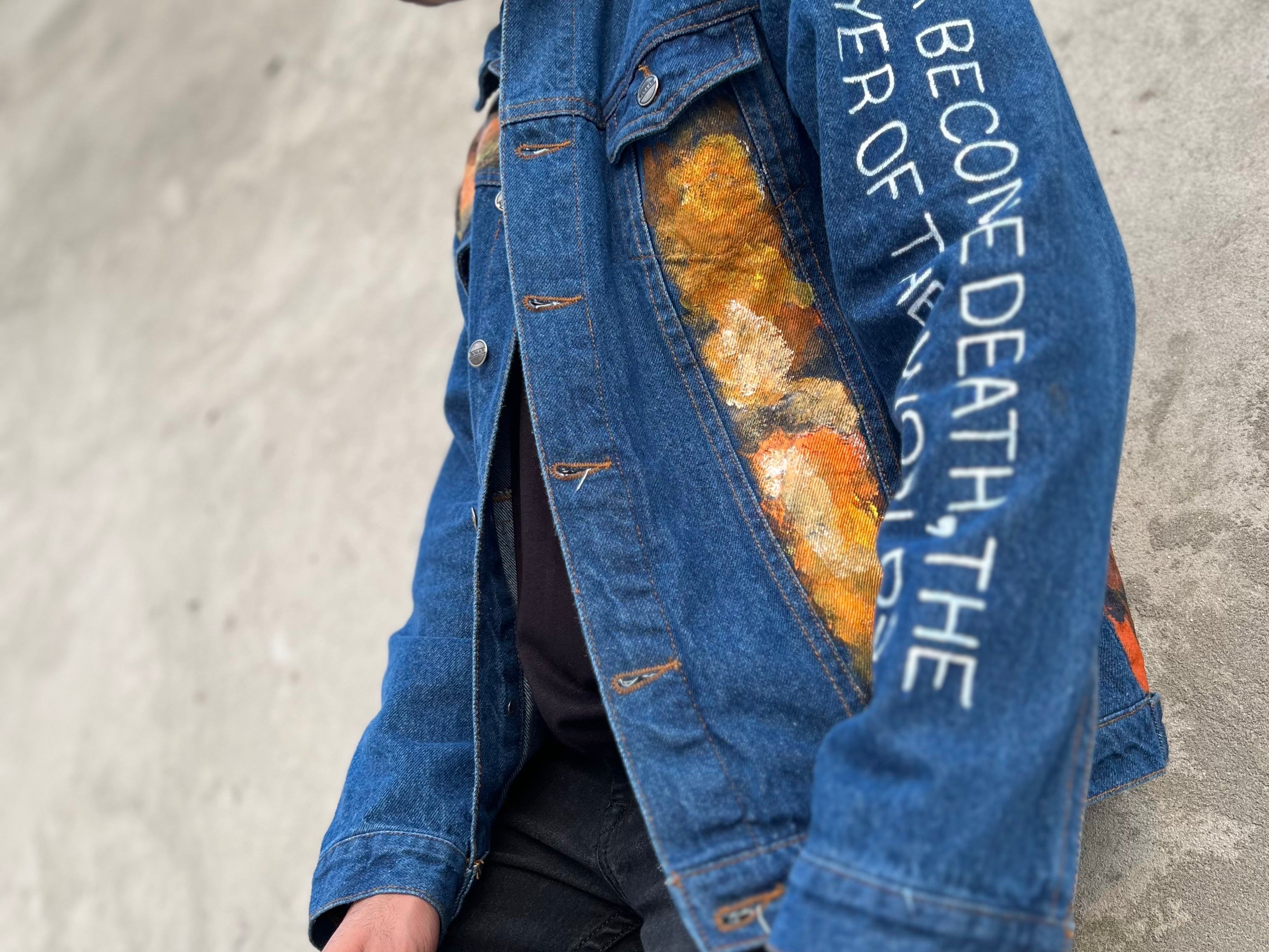 - 100% cotton unisex denim jacket, hand painted and hand embroidered.