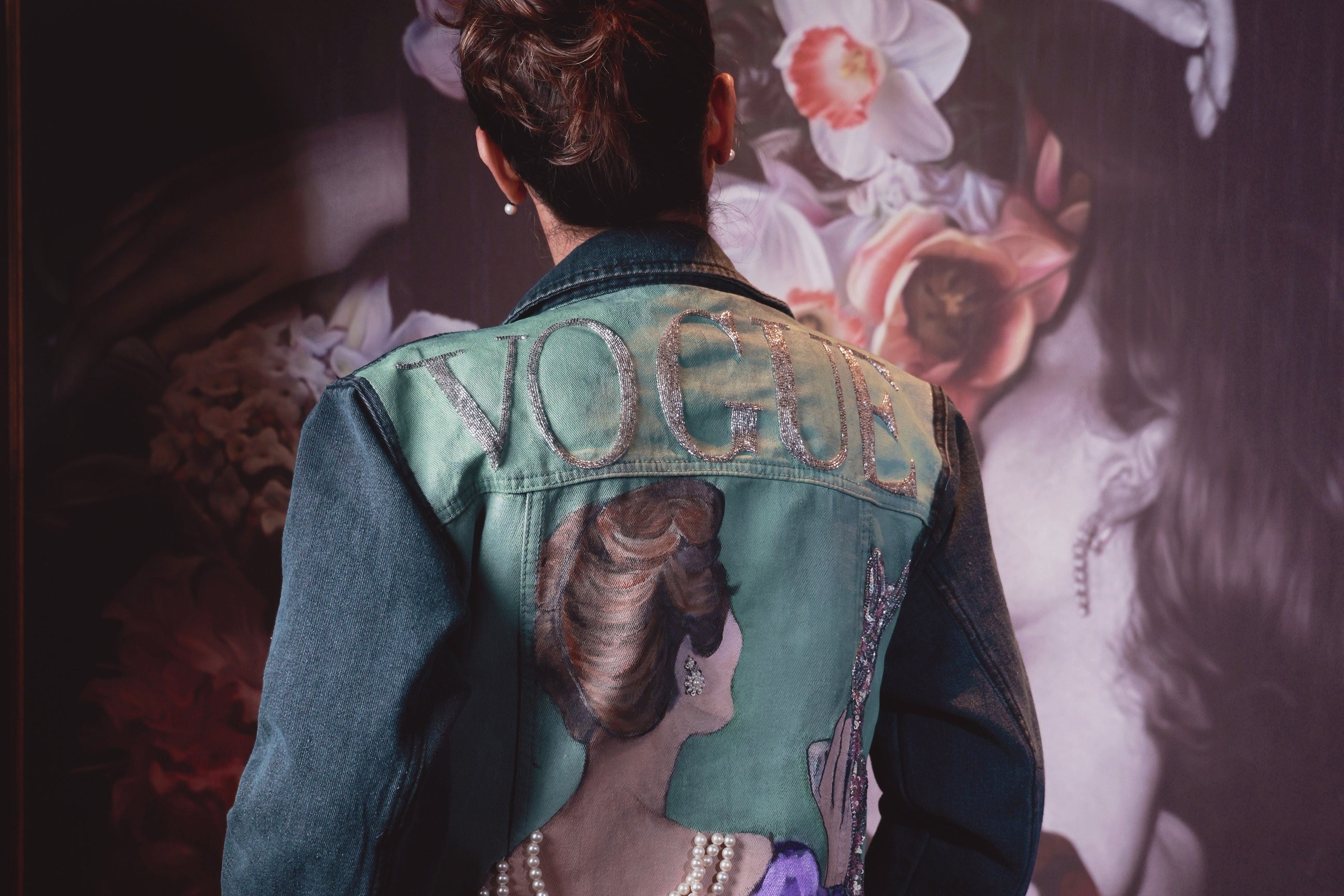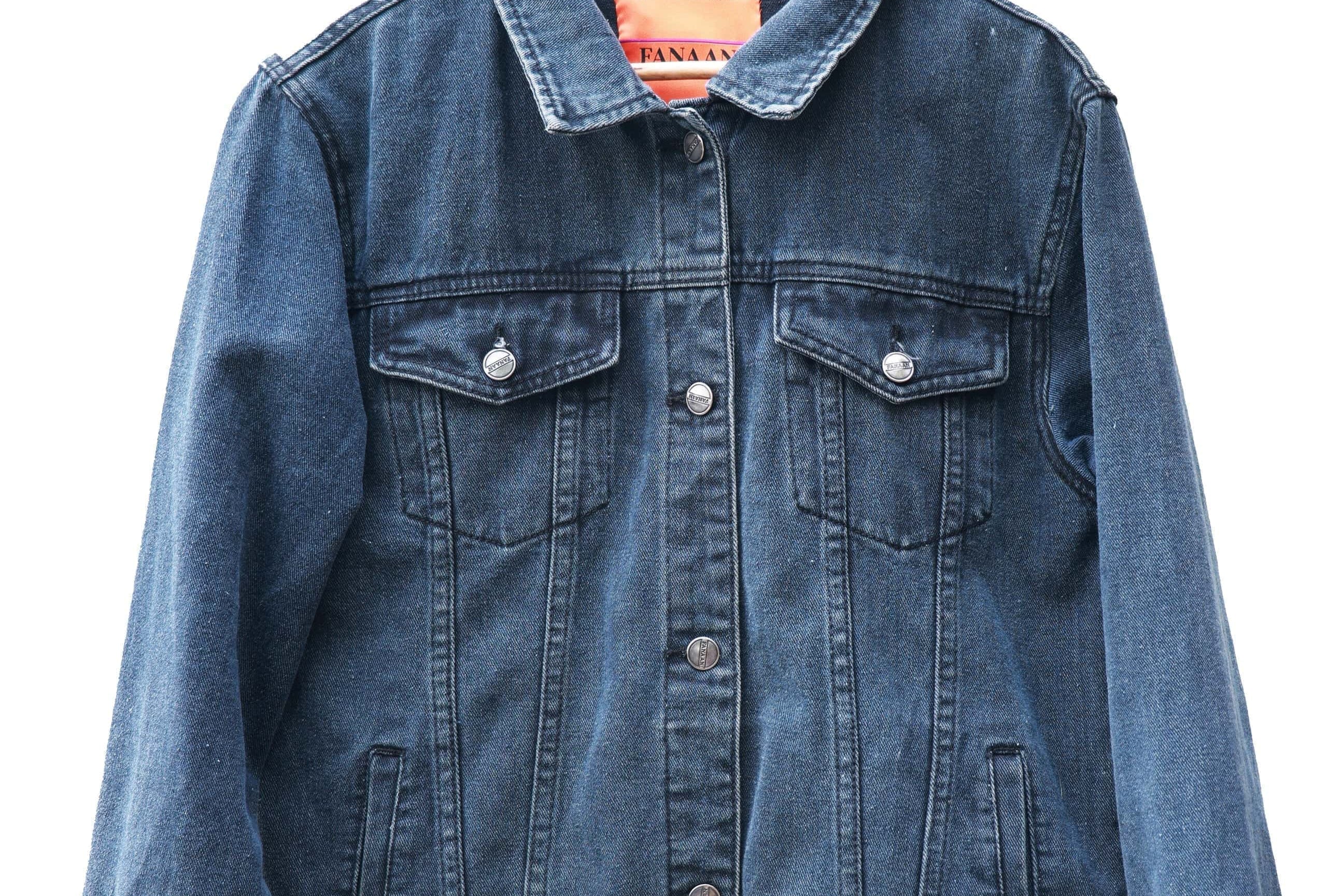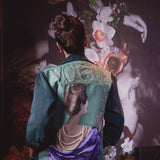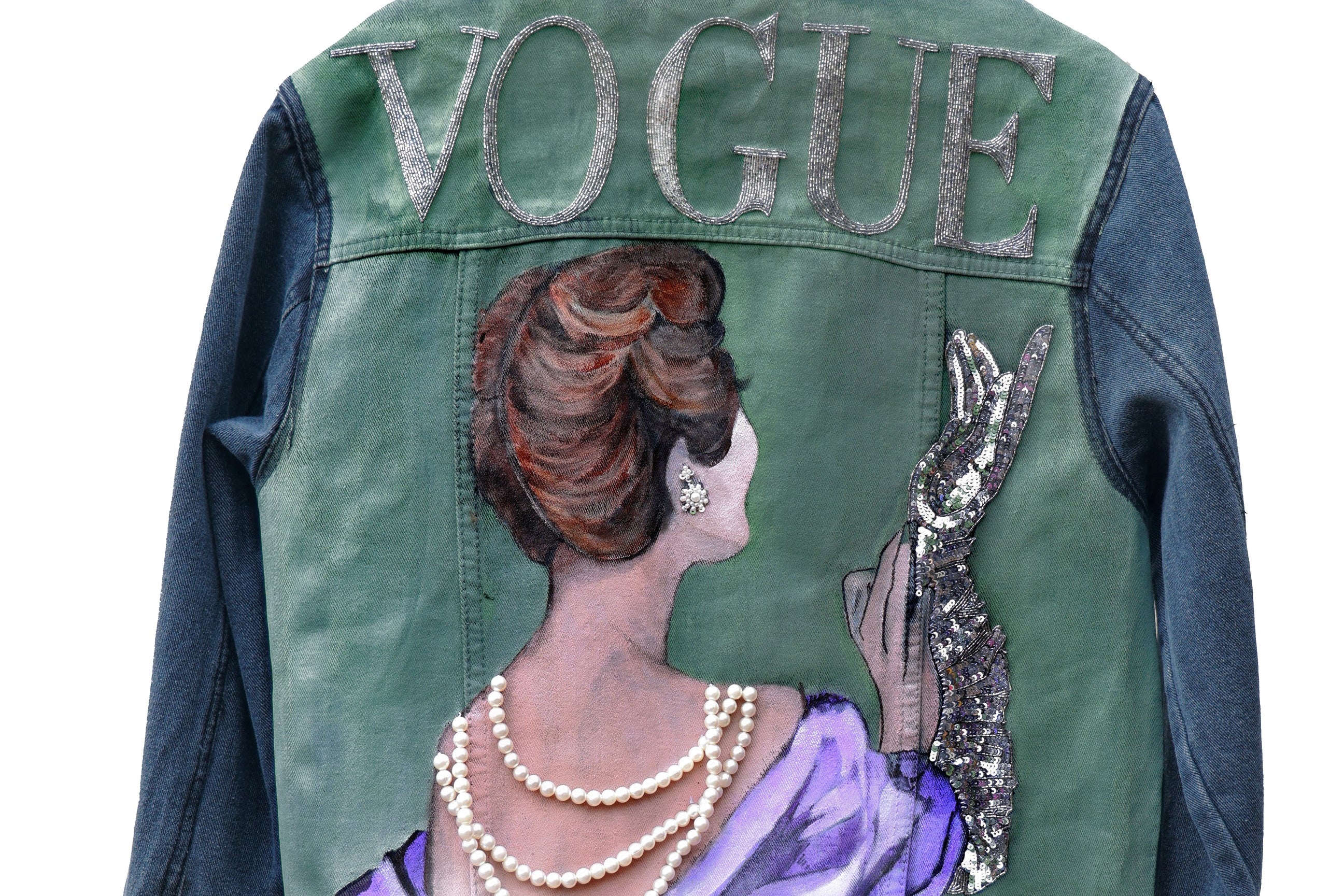 - 100% cotton unisex denim jacket, hand painted, hand embroidered with applique work and metal hardware.