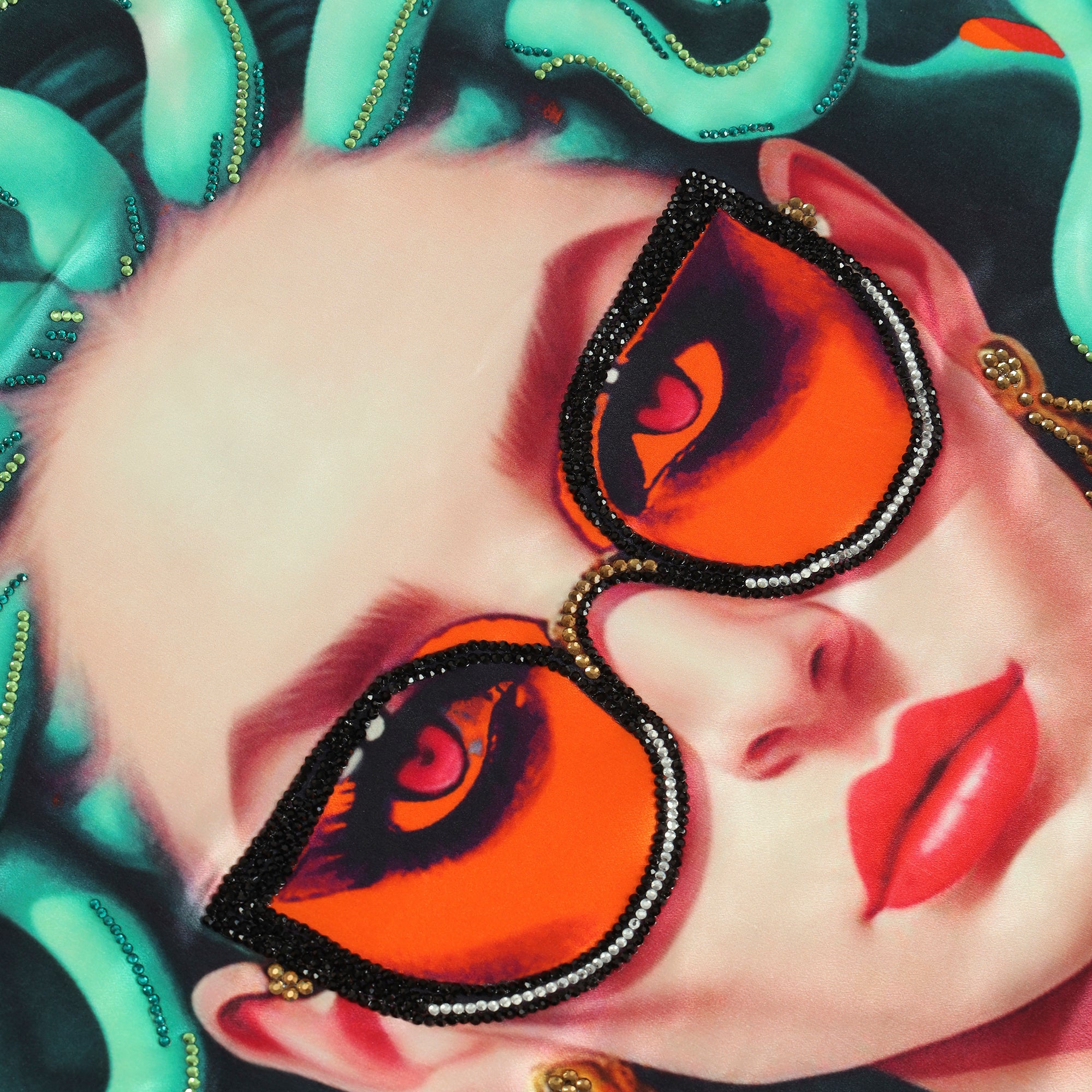 - Our Medusa is fiery, wild and ultra cool; just like you! Printed on 100% silk this is a beauty that you definitely need. Wear it to an afternoon tea or a girly brunch to add that fun pop of colour to your outfit.