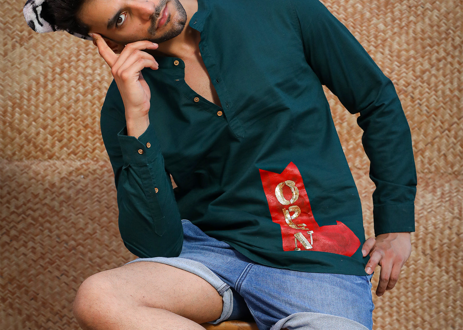 This linen shirt is a kurta style slim fit silhouette. Please refer to the size chart for your nearest best fit.