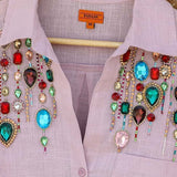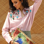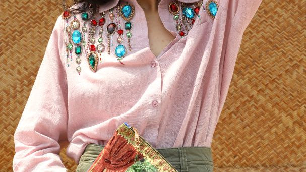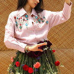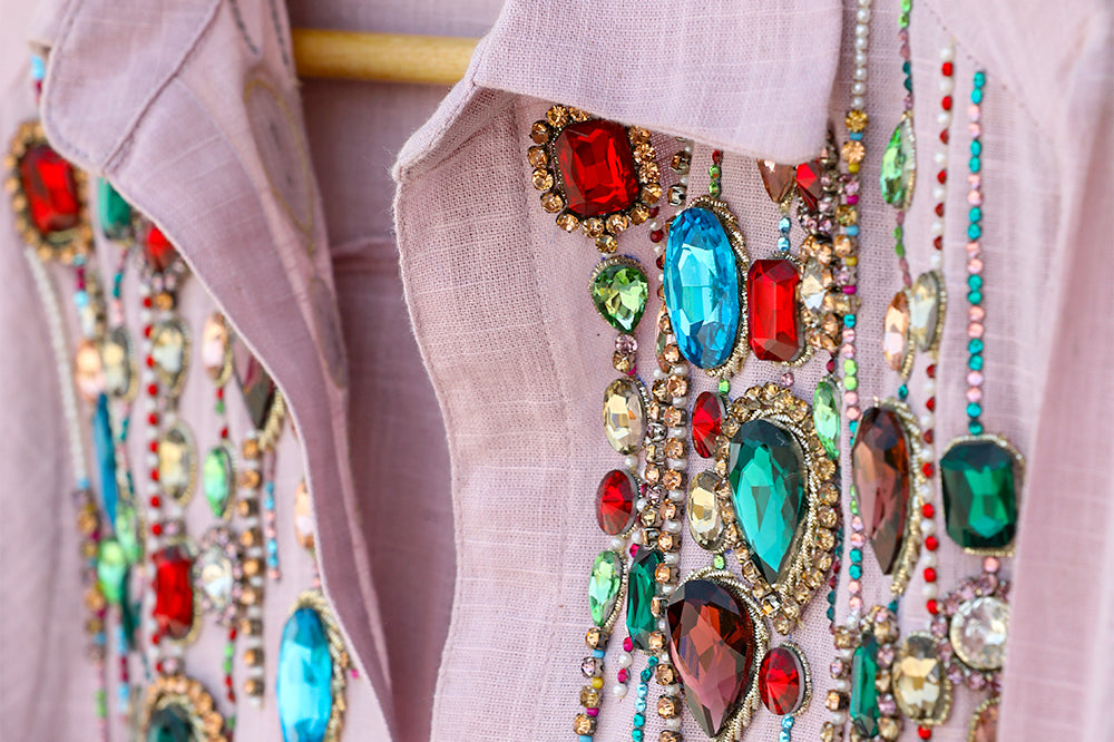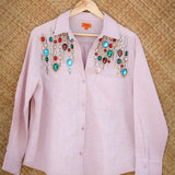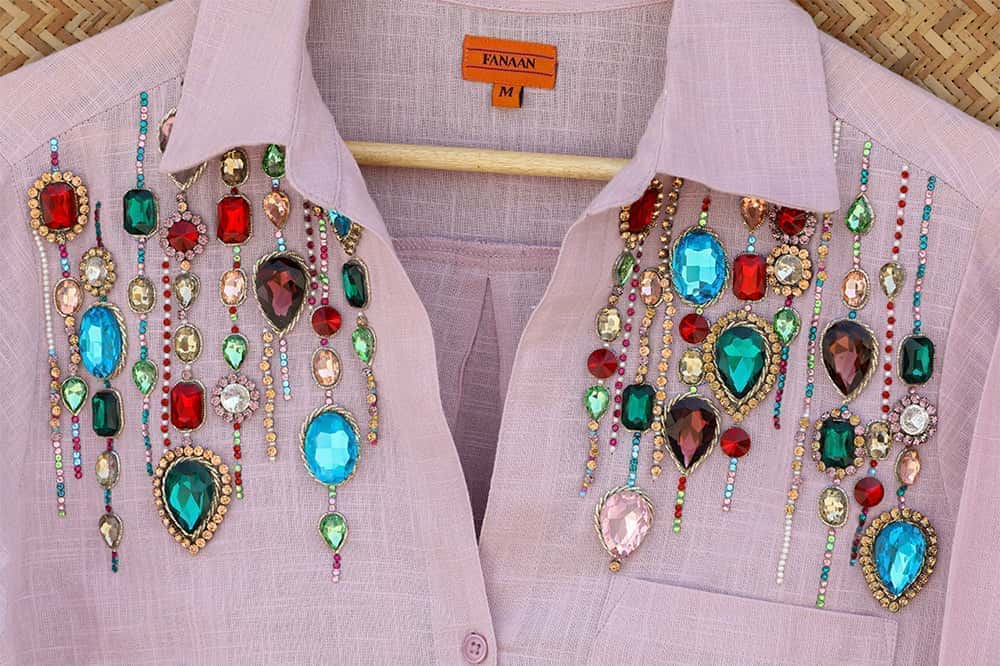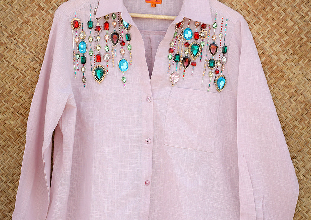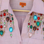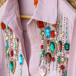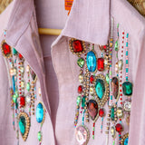 You probably don't even remember the last time you ate one of those crystallised sweets, right? But we are bringing that sweet childhood memory alive again with the 'Hard Candy' Shirt - hand embroidered with big, sparkly crystals and threadwork, this is an elegant shirt that will be a timeless addition to your wardrobe.
