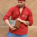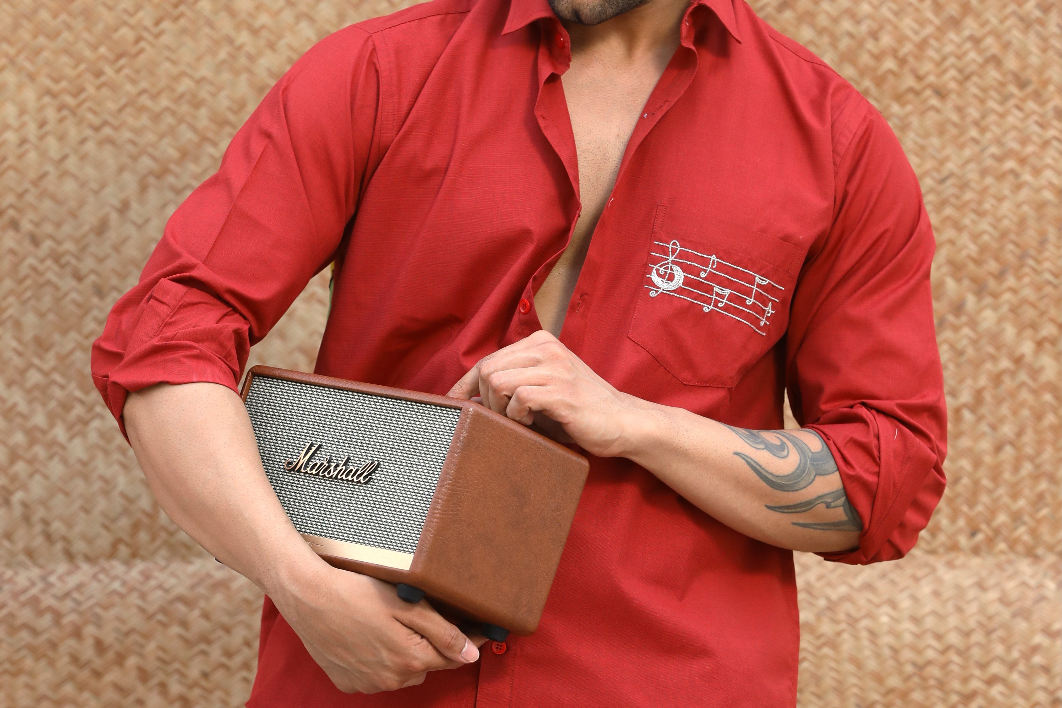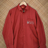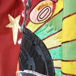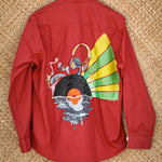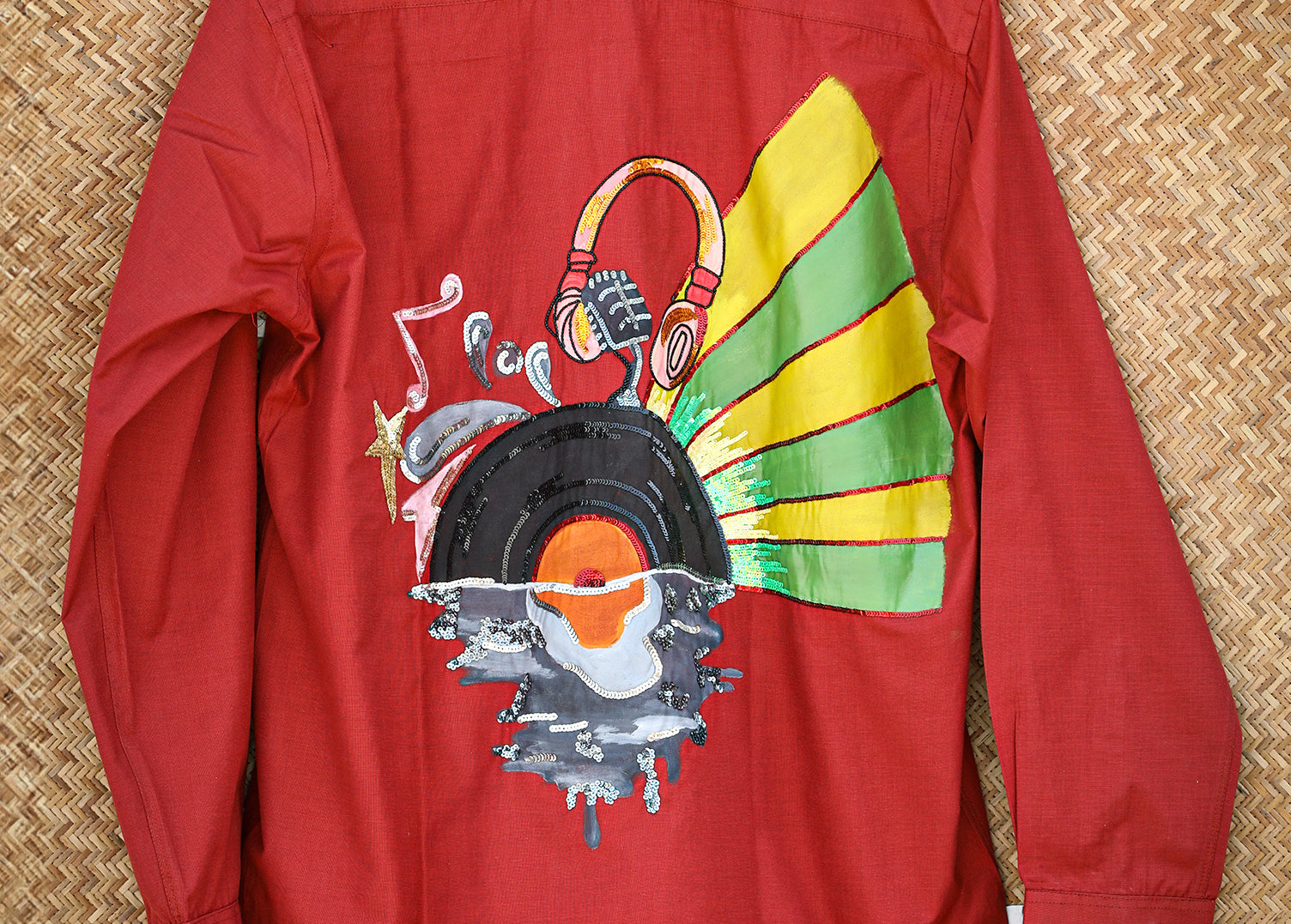 This maroon shirt is hand painted and hand embellished keeping that retro vibe in mind - the sunset melting away with the sound of music and everything was right in the world again.