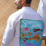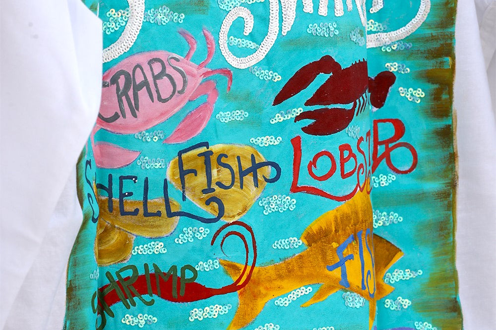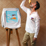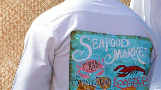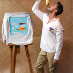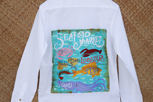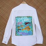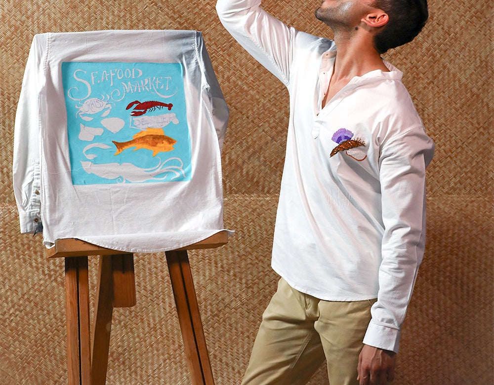 This hand painted and hand embroidered linen shirt is dedicated to your first trip to the beach where you collected shells of all shapes, saw little crabs running towards you (and then running away from them!) and was so disappointed to learn that lobsters and crabs are only red when they are cooked!