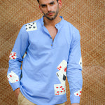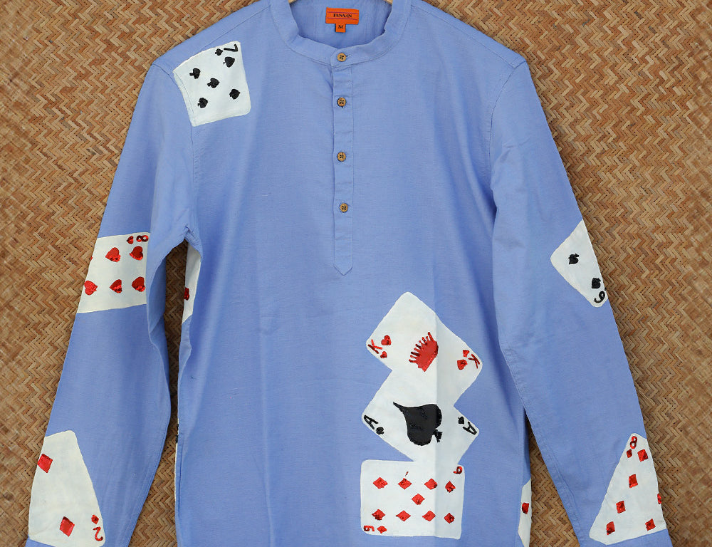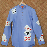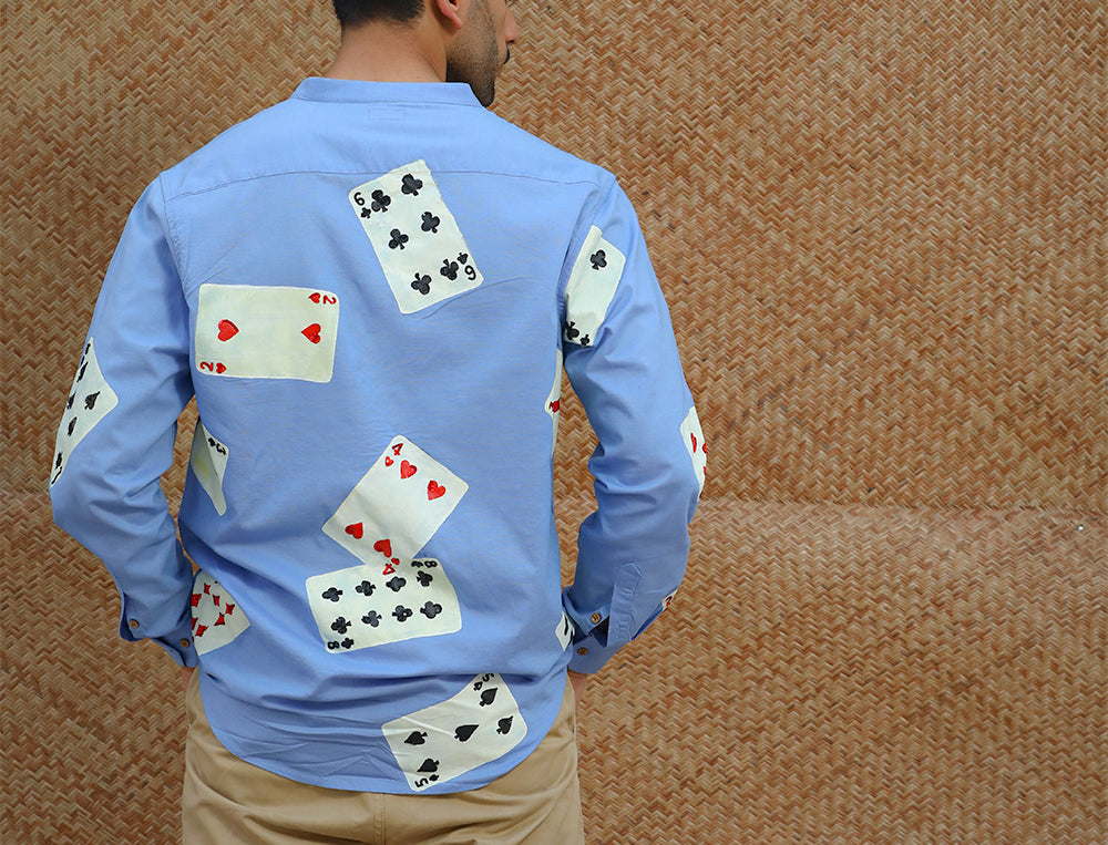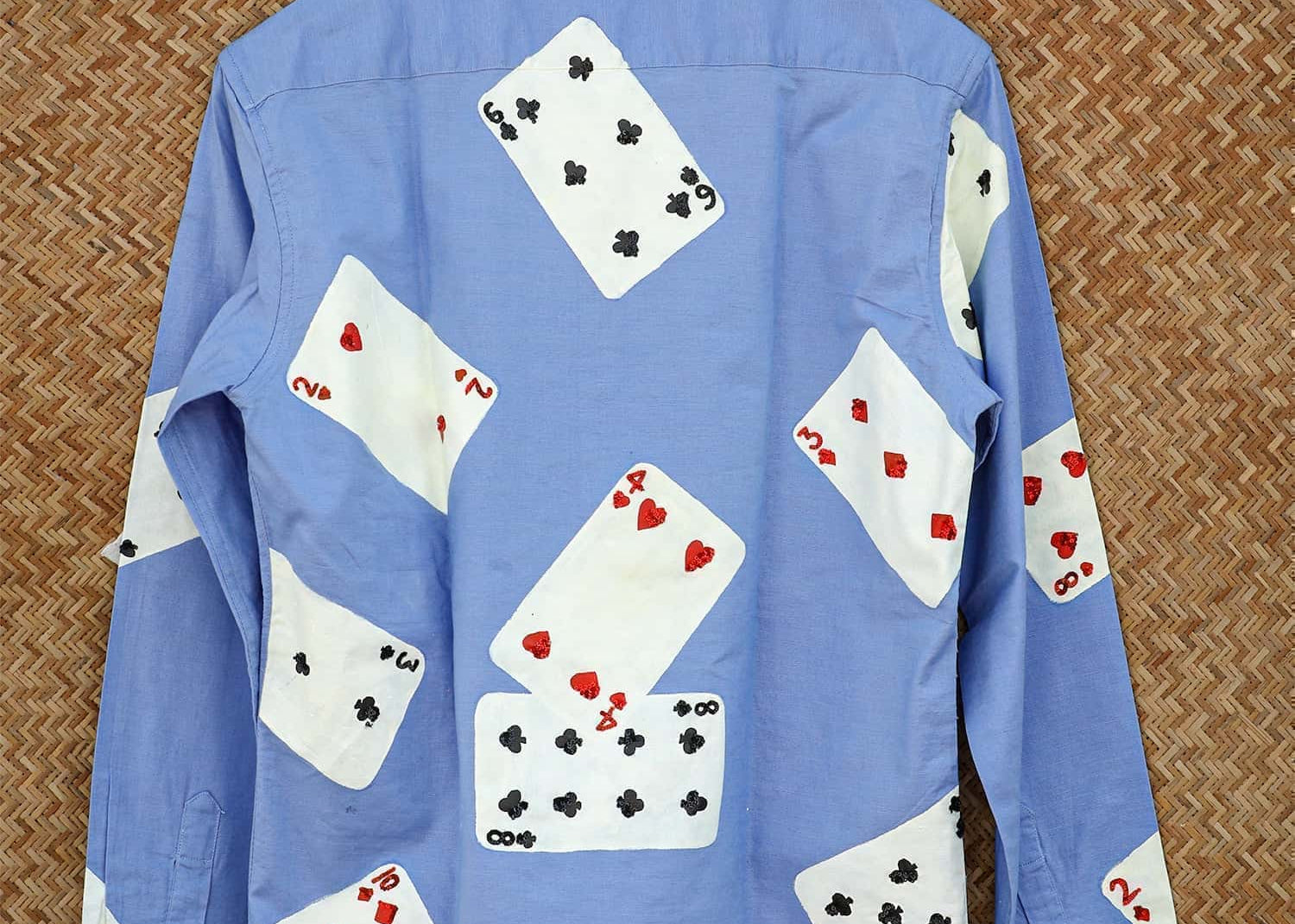 Endless hours were spent playing Solitaire on Windows 95, then 97, then 98 and then one day you just stopped! Well, this hand painted and hand embroidered playing cards shirt is a reminder of those little moments where you selected the perfect deck cover and tried to beat your own high score.