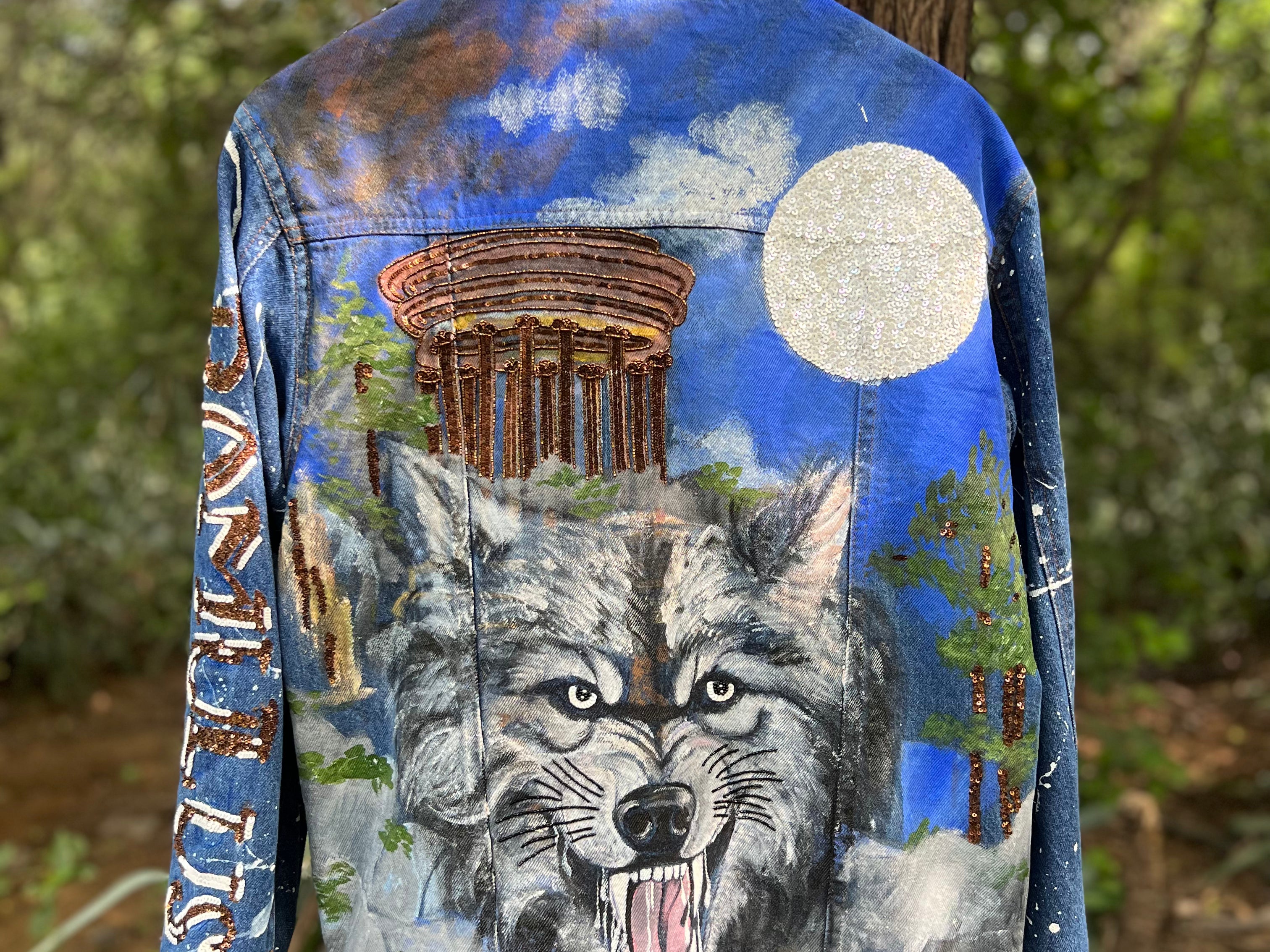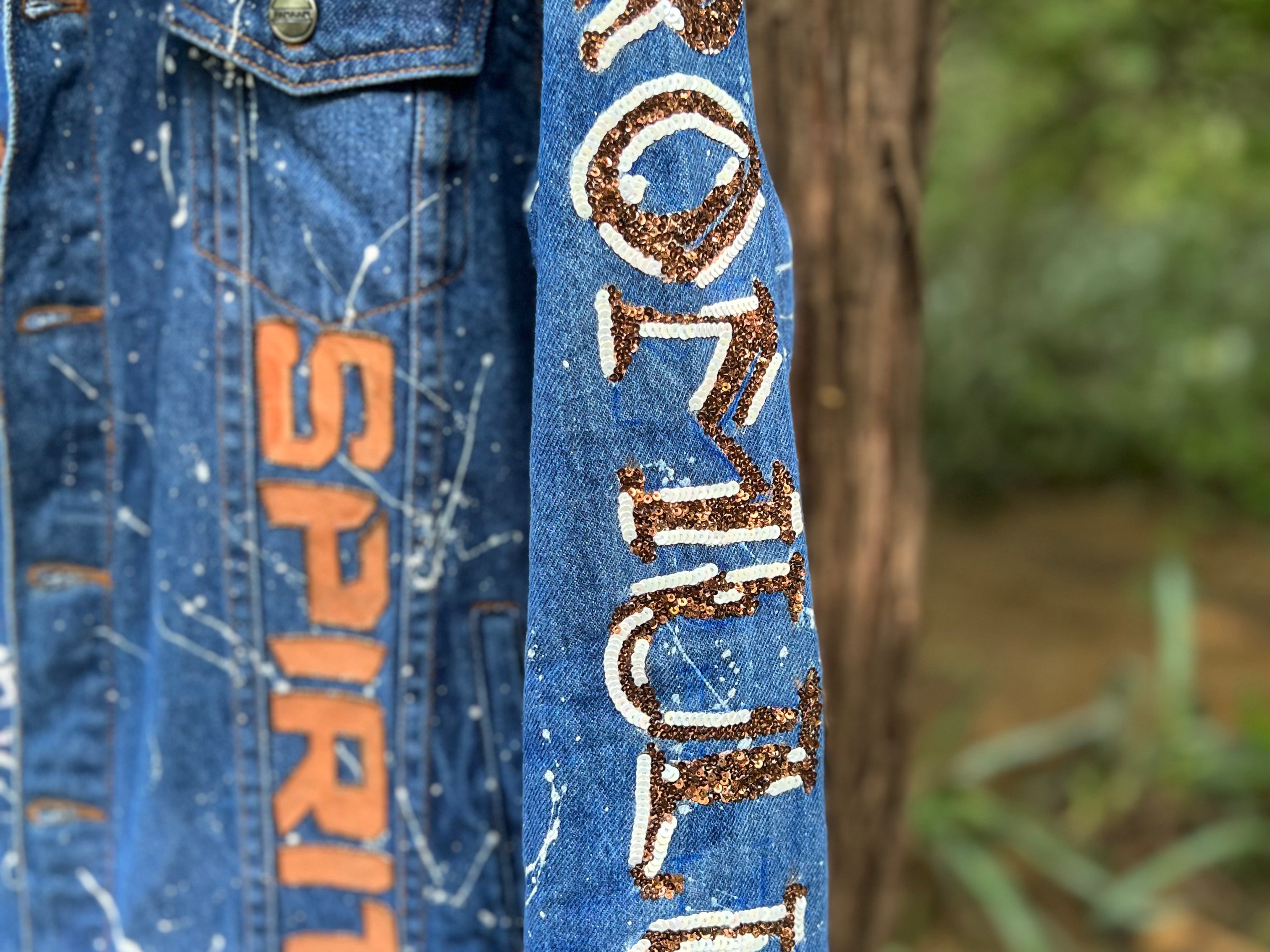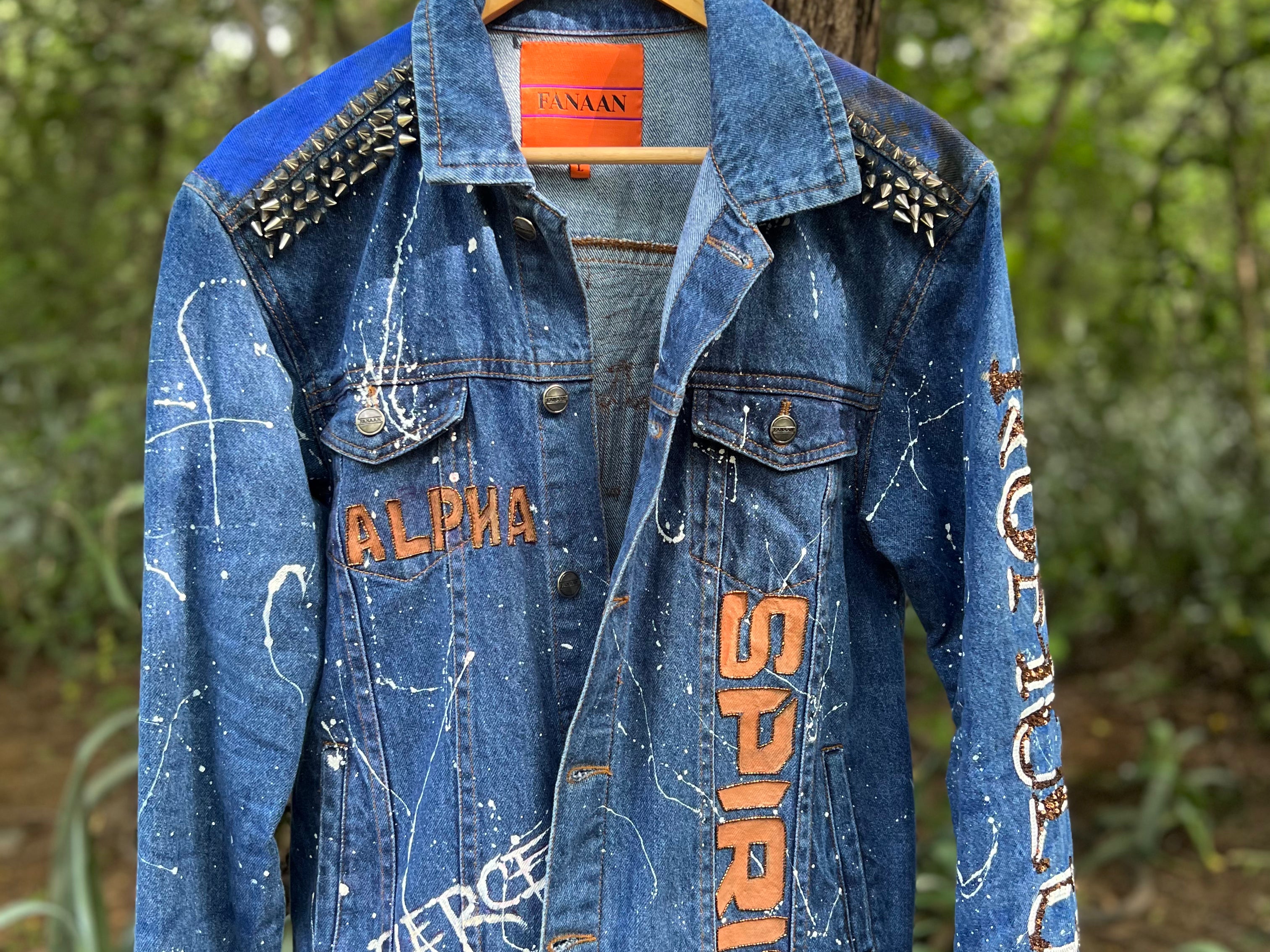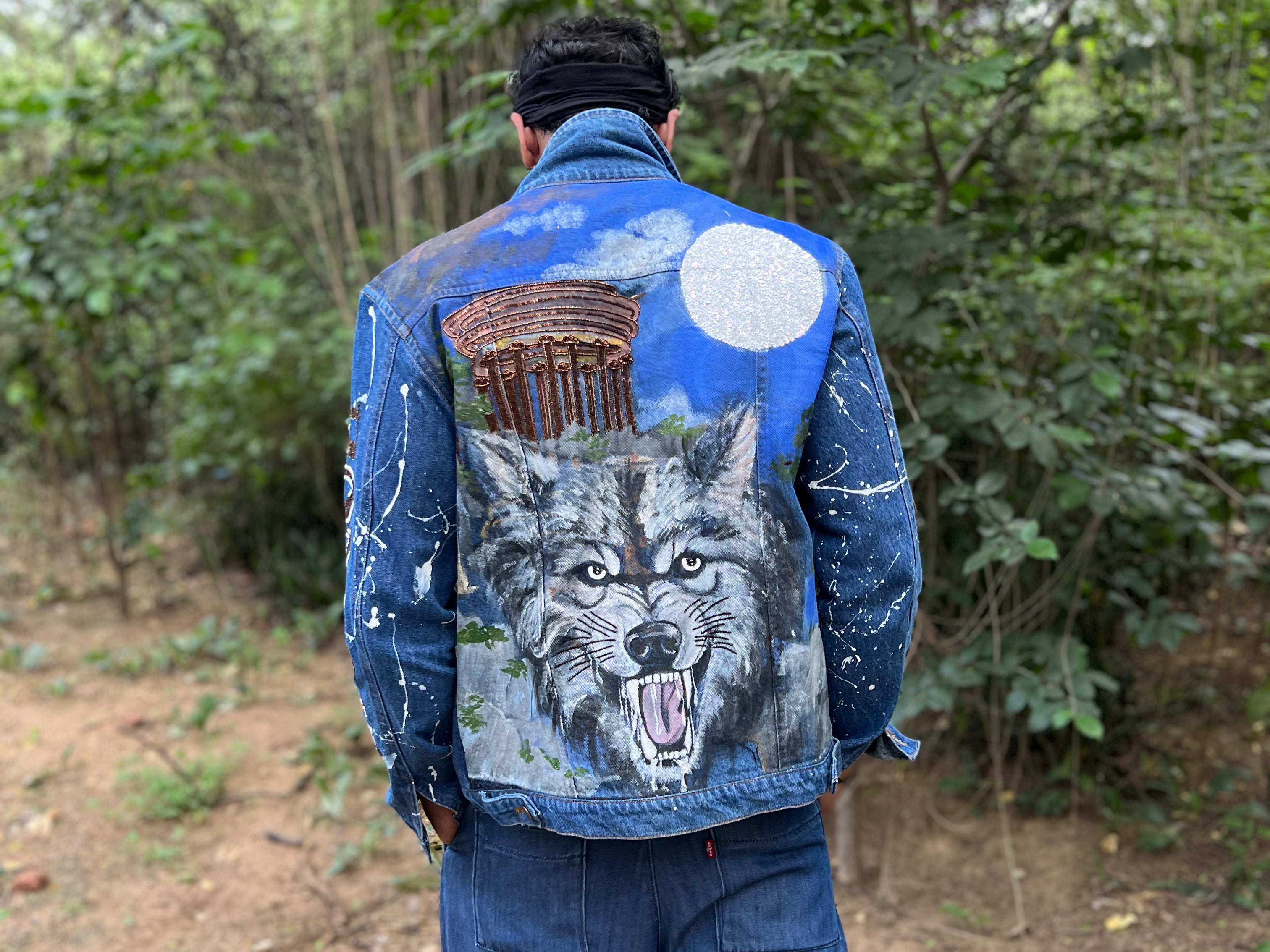 - 100% cotton unisex denim jacket, hand painted & hand embroidered.