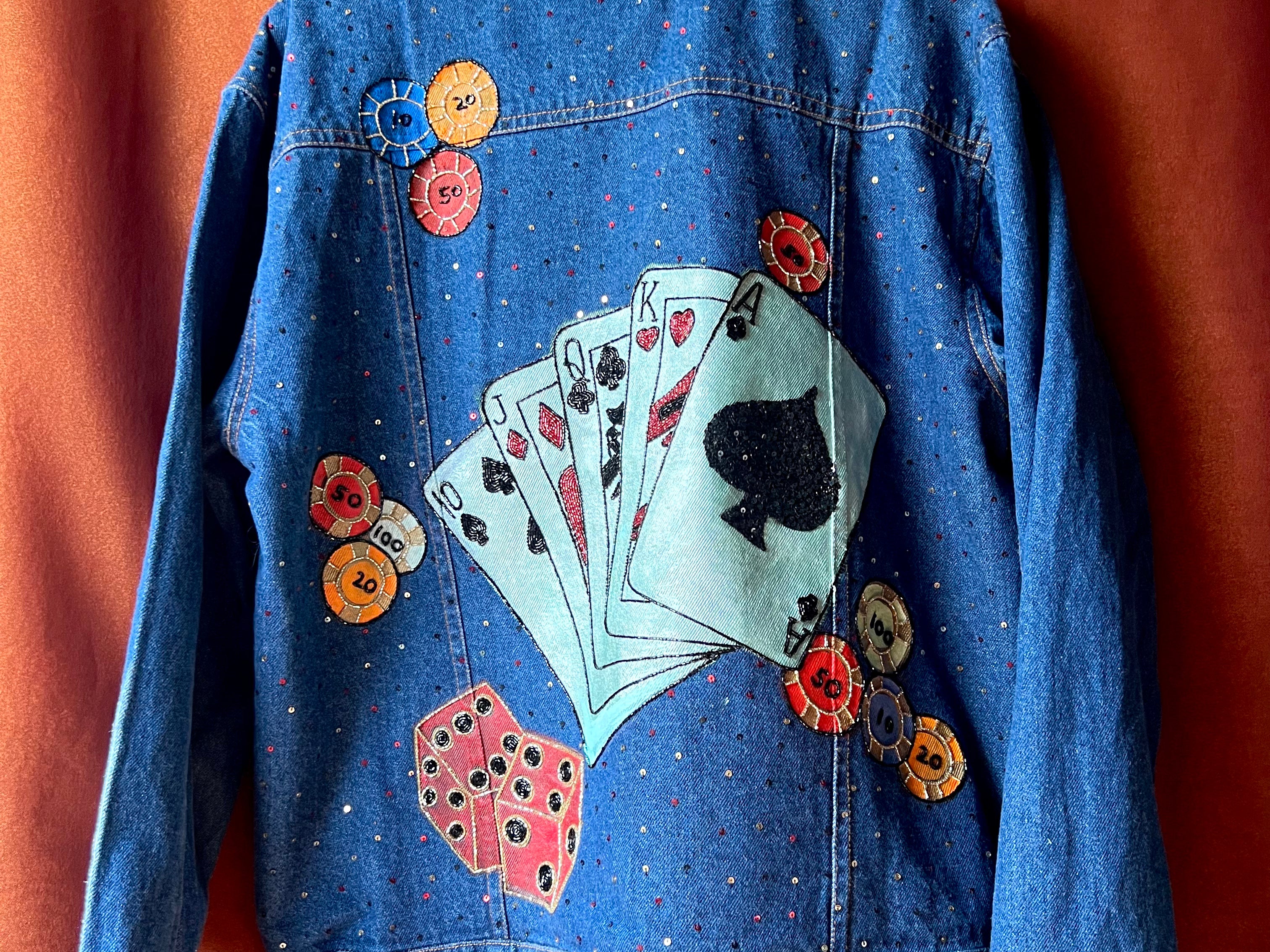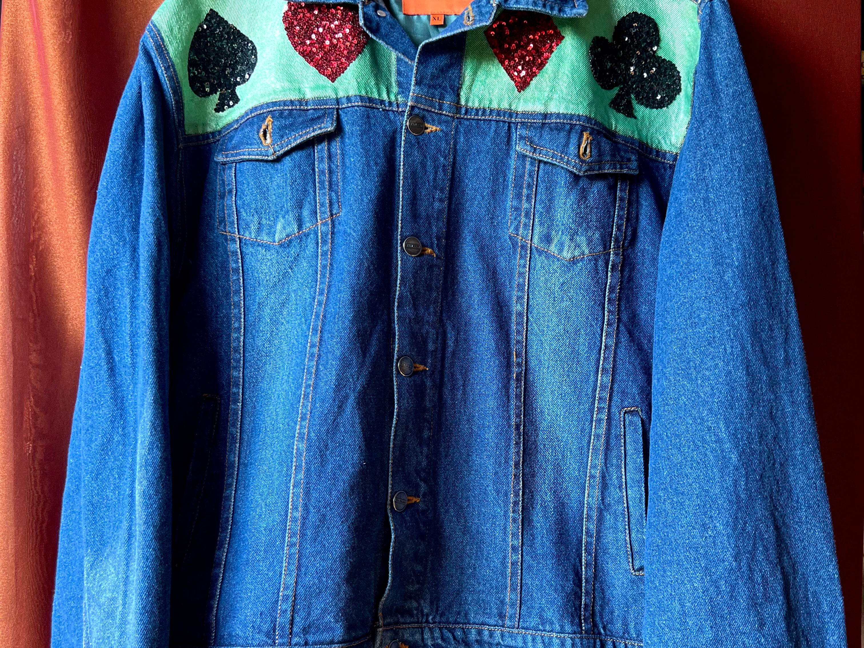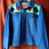 - 100% cotton unisex denim jacket, hand painted, hand embroidered.